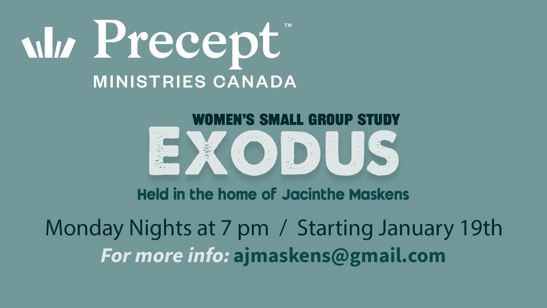 A Women's Small Group Study: Exodus. As we are shortly saying goodbye to 2025, we are looking forward to our winter study in Exodus. After spending a whole year studying Genesis (last year), we pick up where the author left off. You don't need to have studied Genesis to join us. You will see a remarkable, practical study of deliverance, redemption, the Law, and the Tabernacle. Can't wait!!